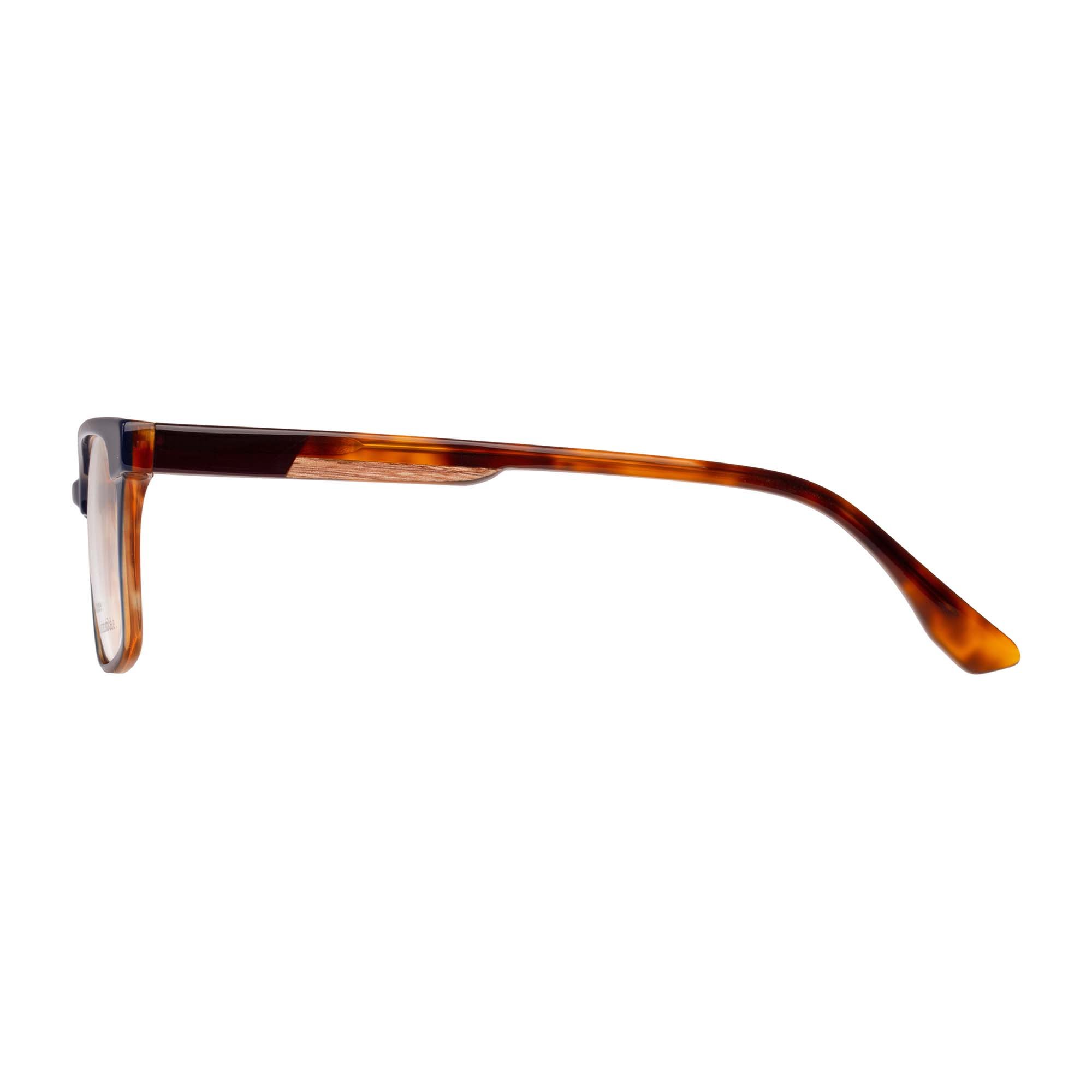 Designed in two shades of tortoiseshell, contrasting acetate along the upper eye rim coordinates naturally with matching tips