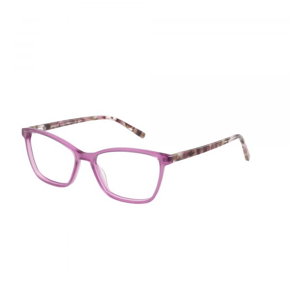 Square cat eye with slim-line temples in sustainable Acetate Renew with accent wood temple tip detail.