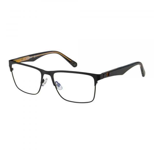 Durable stainless steel front with acetate temples featuring bespoke coloured core wire with logo