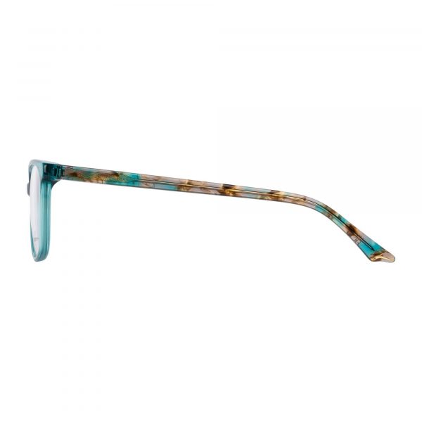 Square cateye acetate frame. Metal end piece.Slim metal temples. Spring hinges. Foil logos. Signature scalloped temple tips.
